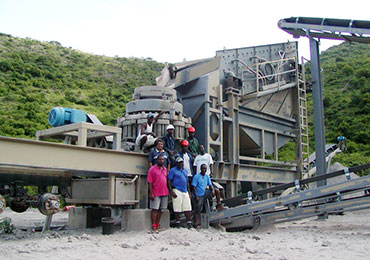 經(jīng)過F5X1345給料機預(yù)篩分,小料直接打入圓錐破的中轉(zhuǎn)料倉,大料經(jīng)過顎破破碎之后也進入中轉(zhuǎn)料倉,中轉(zhuǎn)料倉同時上兩臺HPT300多缸液壓圓錐破破碎,圓錐破出來的料經(jīng)過兩臺S5X2460-2新型振動篩篩分